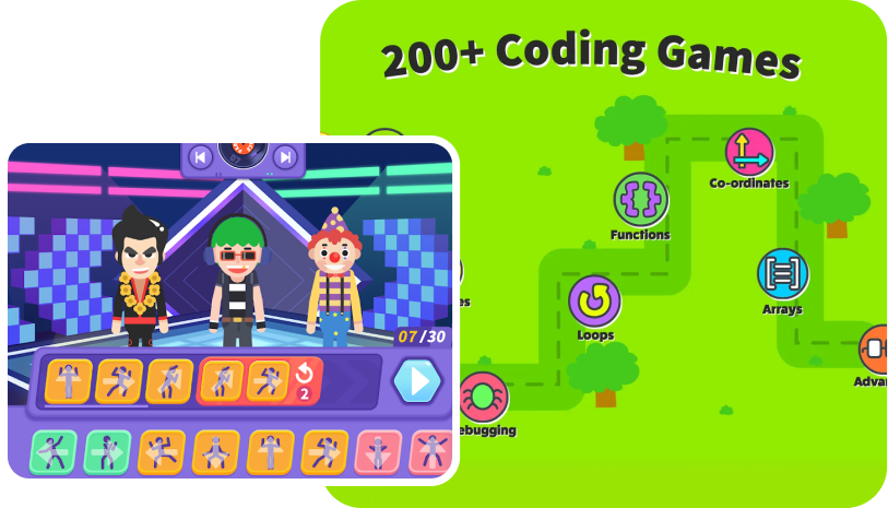 Beginner-friendly coding and programming games that teach logic, sequences, and algorithmic thinking. Designed to introduce students to computer science, robotics, and AI fundamentals in a playful way.