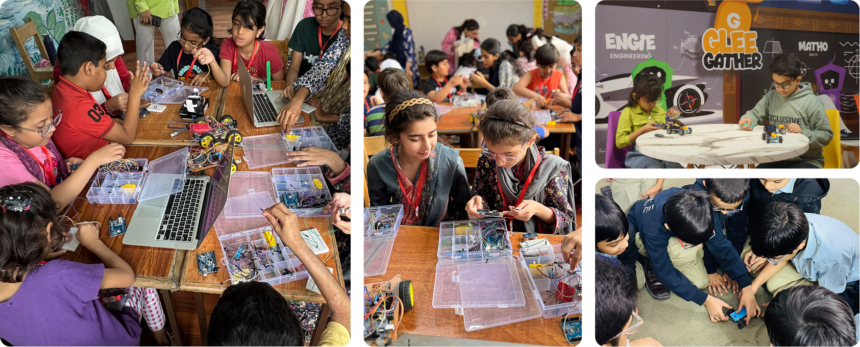 Glee Gather is dedicated to transforming how children in Pakistan experience STEM education. Our hands-on robotics and science programs empower students to become future-ready leaders, innovators, and problem-solvers. Through a cutting-edge curriculum and interactive learning, we spark curiosity, critical thinking, creativity, and collaboration. Guided by our values of innovation, excellence, student empowerment, and community collaboration, Glee Gather makes learning exciting, meaningful, and transformative for every child.
