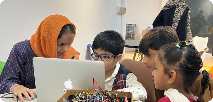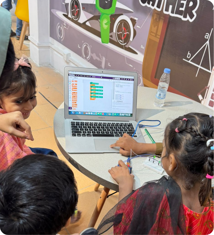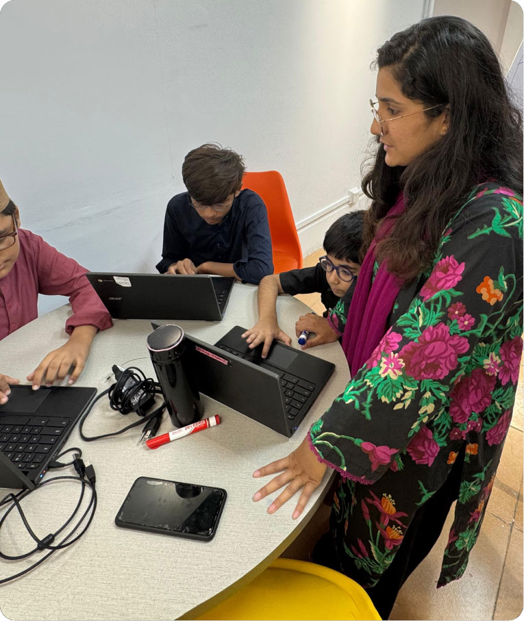 Our structured learning model emphasizes creative experimentation, allowing students to apply coding, design, and logic in meaningful ways.