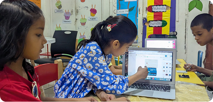 Students use beginner-friendly coding and design platforms suited for their age group.