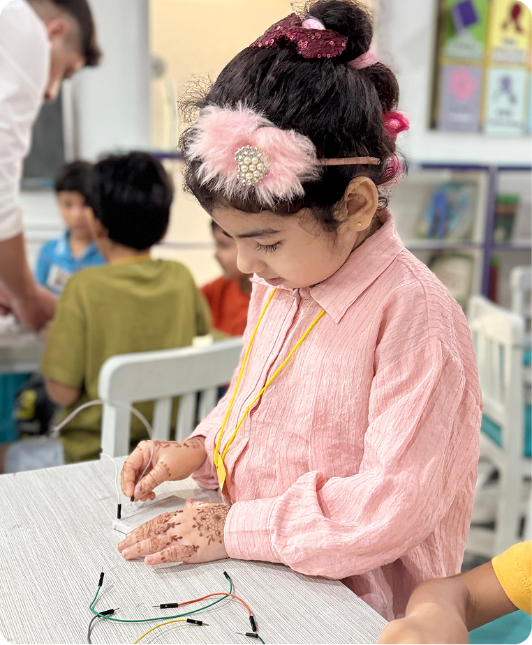 Our structured 70/30 learning model emphasizes hands-on experimentation, allowing children to apply science, math, and logic concepts in engaging, interactive ways.
