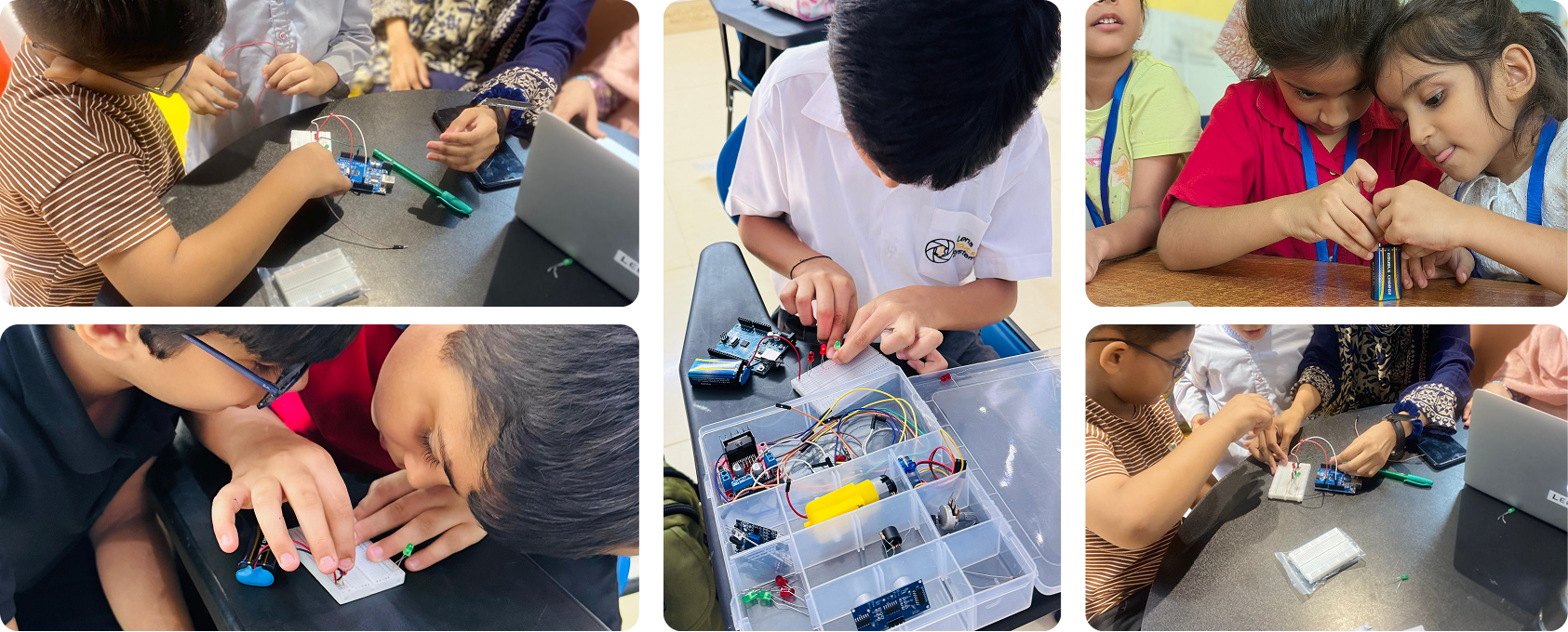 Each student receives a starter robotics kit including all required sensors, motors, and controllers, designed for safety ,and creativity.