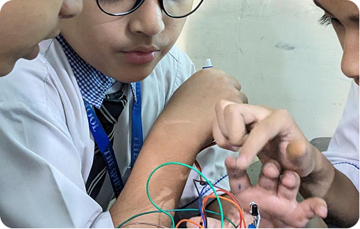 Safety is a top priority: all activities use low-voltage components, teachers supervise every practical step, and students follow clear safety rules.