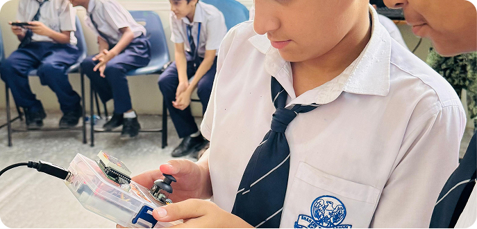 Watch students soldering circuits, prototyping inventions, and crafting electronic projects in our hands-on maker sessions.