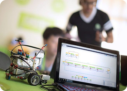 Build, wire, and animate real robots using simple mechanics, sensors, and modules.